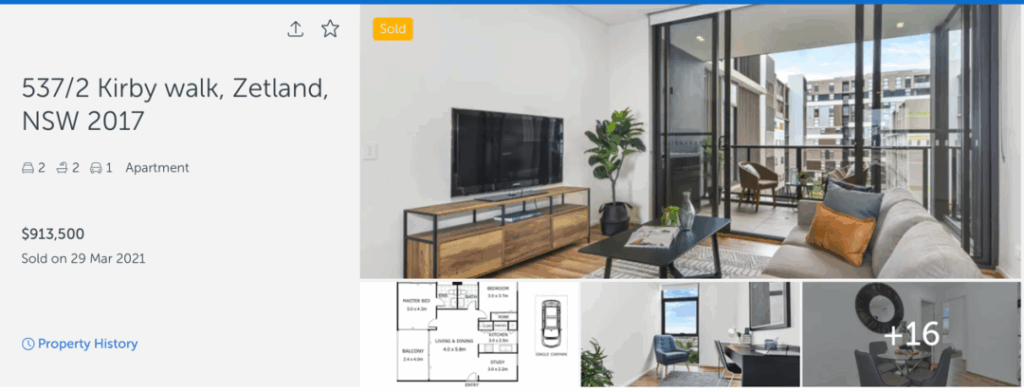 这套位于悉尼Zetland两房两卫的公寓,2021年3月以91.3万售出,2013年买入价格为71.2万,7年涨幅20.1%。