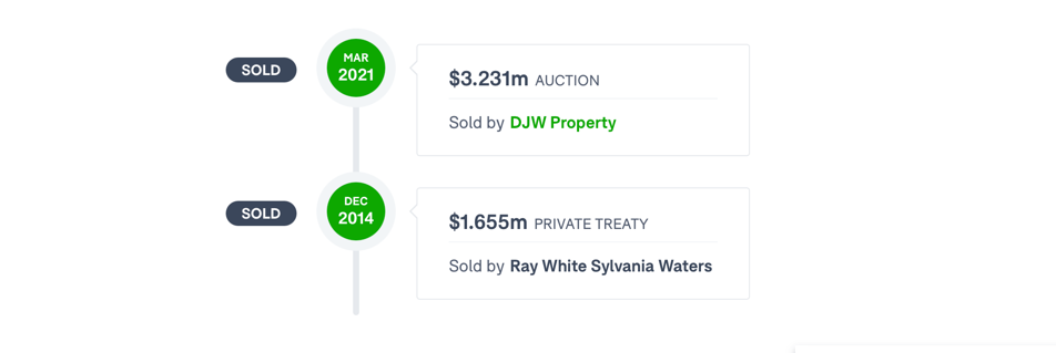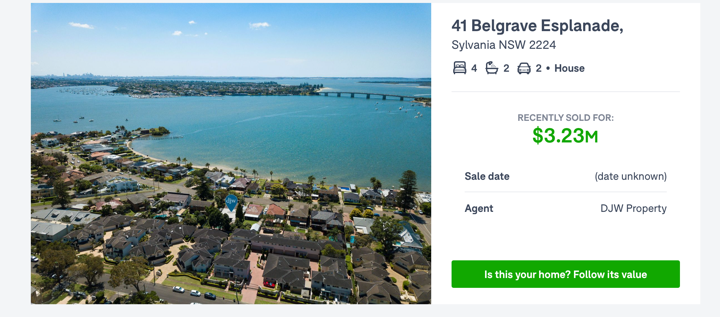 这套位于悉尼南区的 Sylvania 有水景的别墅,在2021年3月份售出,售出价格是323万澳币,在2014年买入的价格是165万,7年的涨幅近一倍。