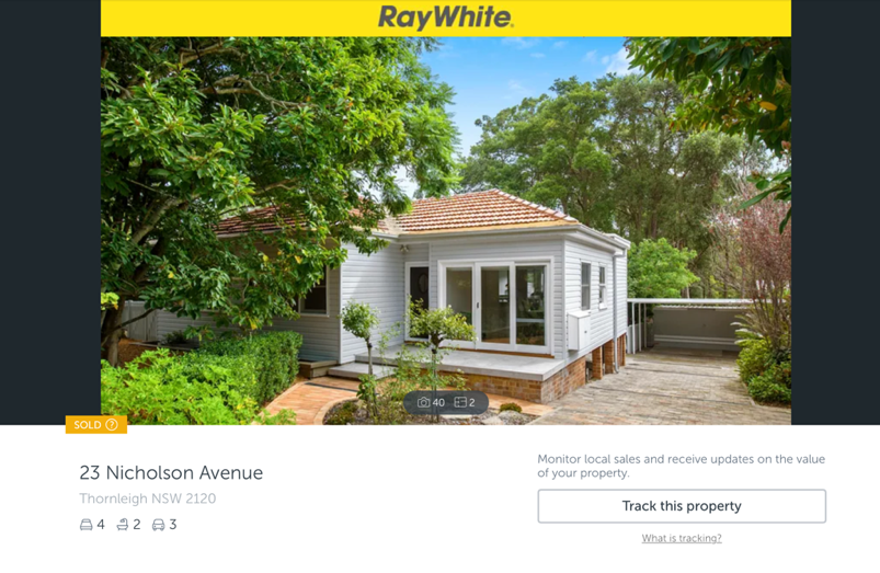 这套位于悉尼西北的Thornleigh, 2013年以86万澳币的价格买入,2021年三月以200万澳币价格售出,7年涨幅翻倍。