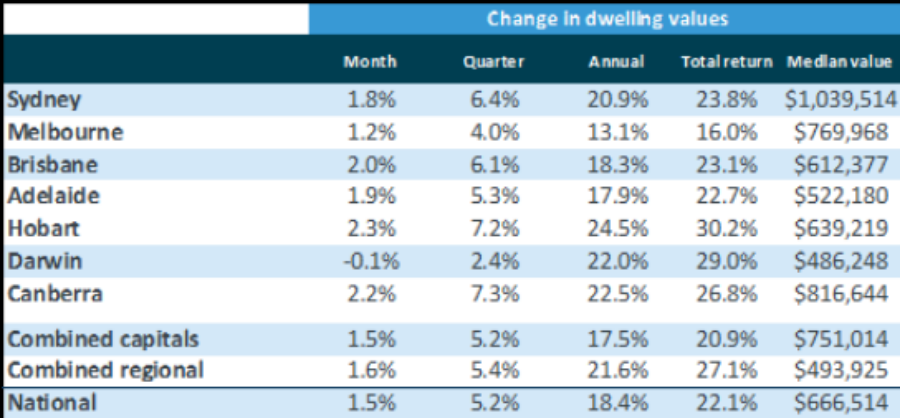 根据CoreLogic 的最新指数,在严格的封锁措施下,8 月份房价仍上涨 1.5%,高于平均水平,但却是 1 月份以来的最低月度涨幅。