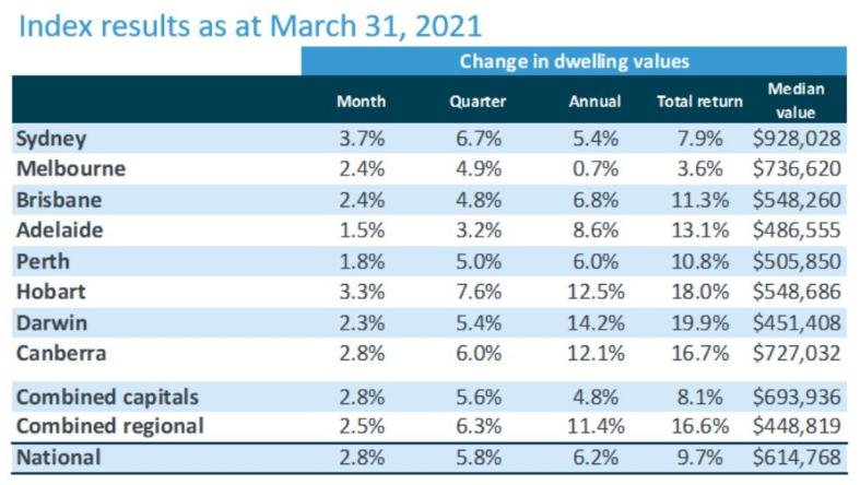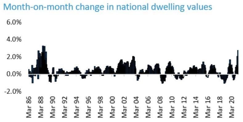 CoreLogic发布的房屋价值指数显示3月份全国房屋价值指数上升了2.8%,这是32年来最大的涨幅。