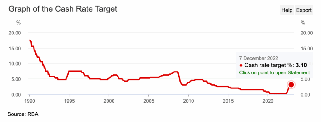 澳大利亚央行在2022年最后一次月度董事会上,宣布自5月来连续第8次上调官方利率,在圣诞季到来之前将利率再度上调25个基点。