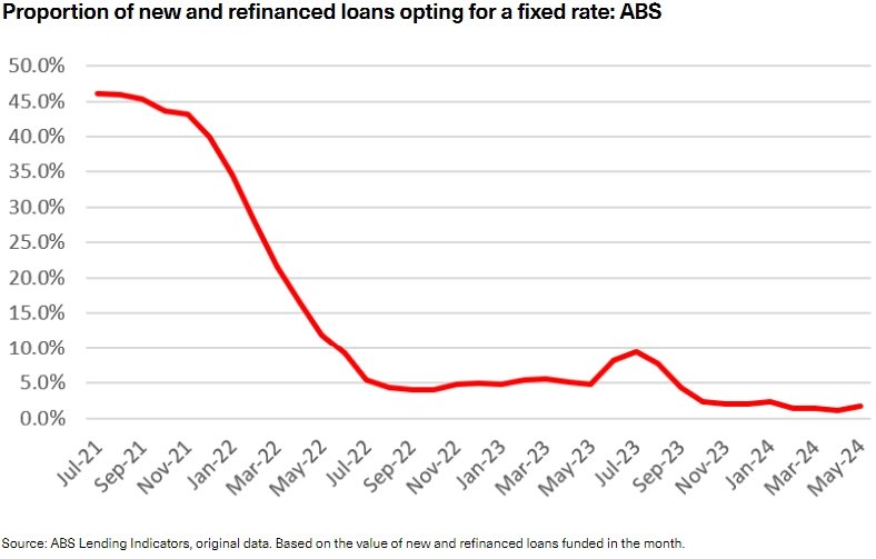 根据ABS的数据,固定利率在2021年年中达到峰值,46%的贷款持有人选择了这一产品。然而,此后比例大幅下滑,5月份新增贷款和转贷贷款中只有1.7%是固定贷款。