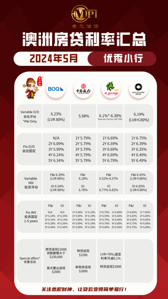 澳联储暂未升息,房贷银行怎么选?——5月最新房贷利率汇总