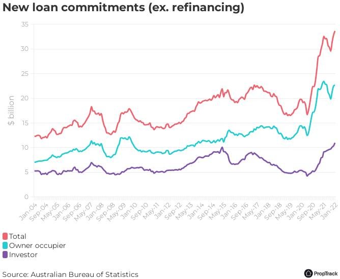 ABS的数据显示,1月份住房贷款需求继续飙升,当月新放贷款达到创纪录的337亿澳元,较去年12月的创纪录水平上升2.6%。