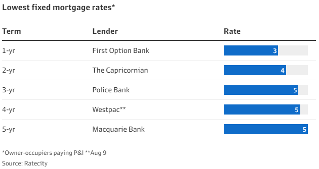 全国最大的银行CBA推出了4.99%的四年固定利率,比现有产品低1.6%,比套餐产品浮动利率5.60%低0.61%。