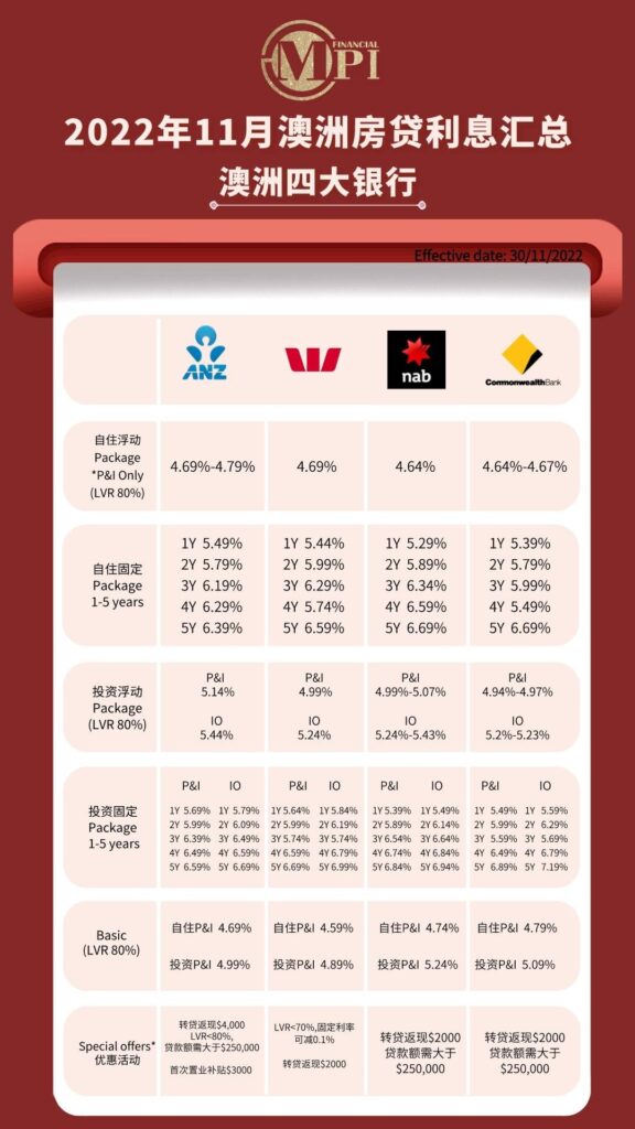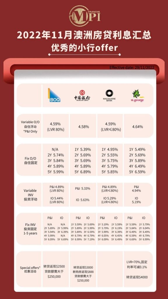 套餐产品 Bank of China的4.58%   麦考瑞银行的4.59%, 对于贷款额度不高的申请人都是很好的选择。