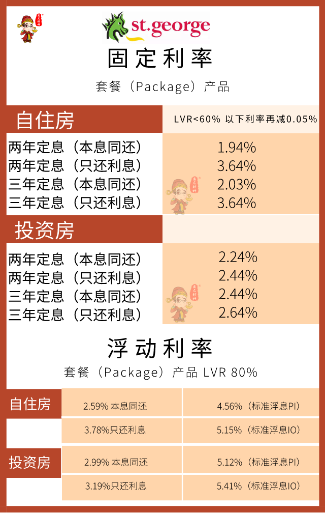 • St George 第一套转贷返2000澳币+2000澳币bonus,之后的物业每套返2000澳币(每套贷款额度在25万澳币以上)截止至2021.6.30