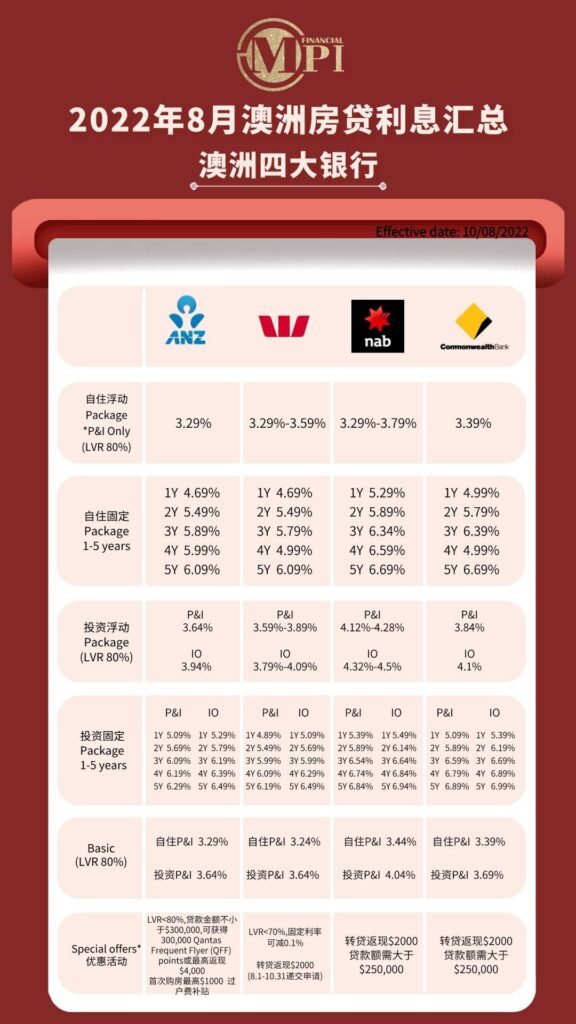 8月澳洲房贷利率总结