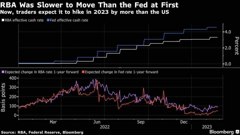RBA的最终利率预计仍将比美联储低逾一个百分点。