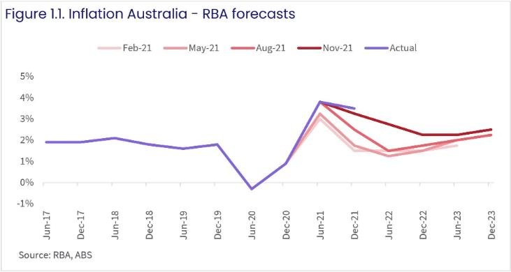 去年12月季度通胀率为3.5%,再次超出了RBA的预测,比11月的预测高出25个基点,比2020年5月的预测高出225个基点。