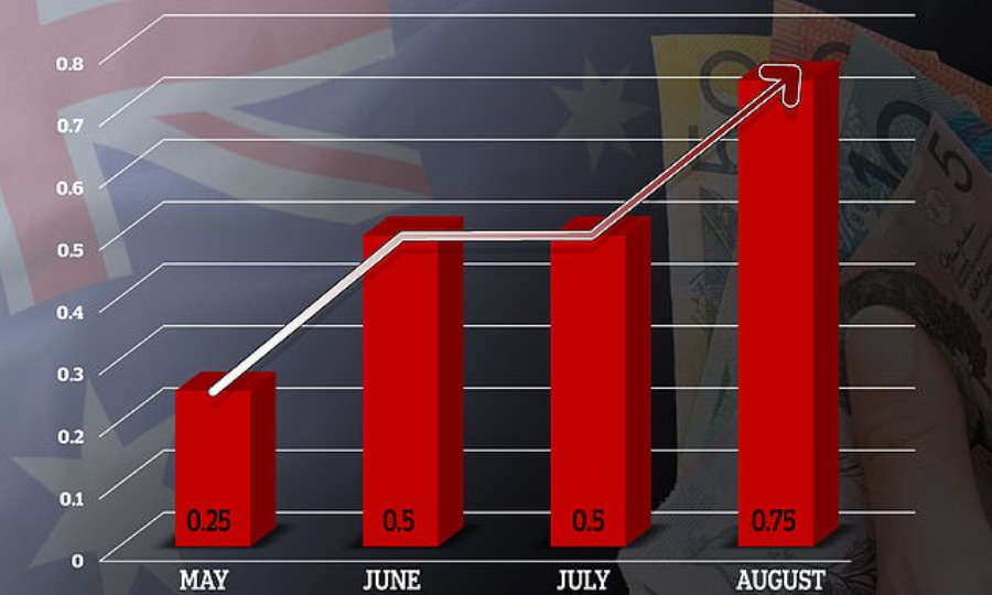 根据Westpac的预测,RBA将在8月和9月分别加息0.5%,然后在10月、11月、12月和2月再分别加息0.25%。